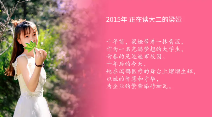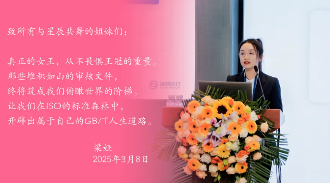 2015年,梁娅在哈尔滨商业大学图书馆远眺松花江,江水的波光映照着她心中的梦想。2017年3月,她踏入了瑞鹤医疗的大门,最初她是一名研发部成员,在公司的快速成长期,她快速学习、吸收新知,逐步成长为体系的骨干力量。2021年,梁娅凭借卓越的表现转岗至质量部,并于2024年成为质量部高级体系工程师,肩负起公司产品质量体系的重要职责。